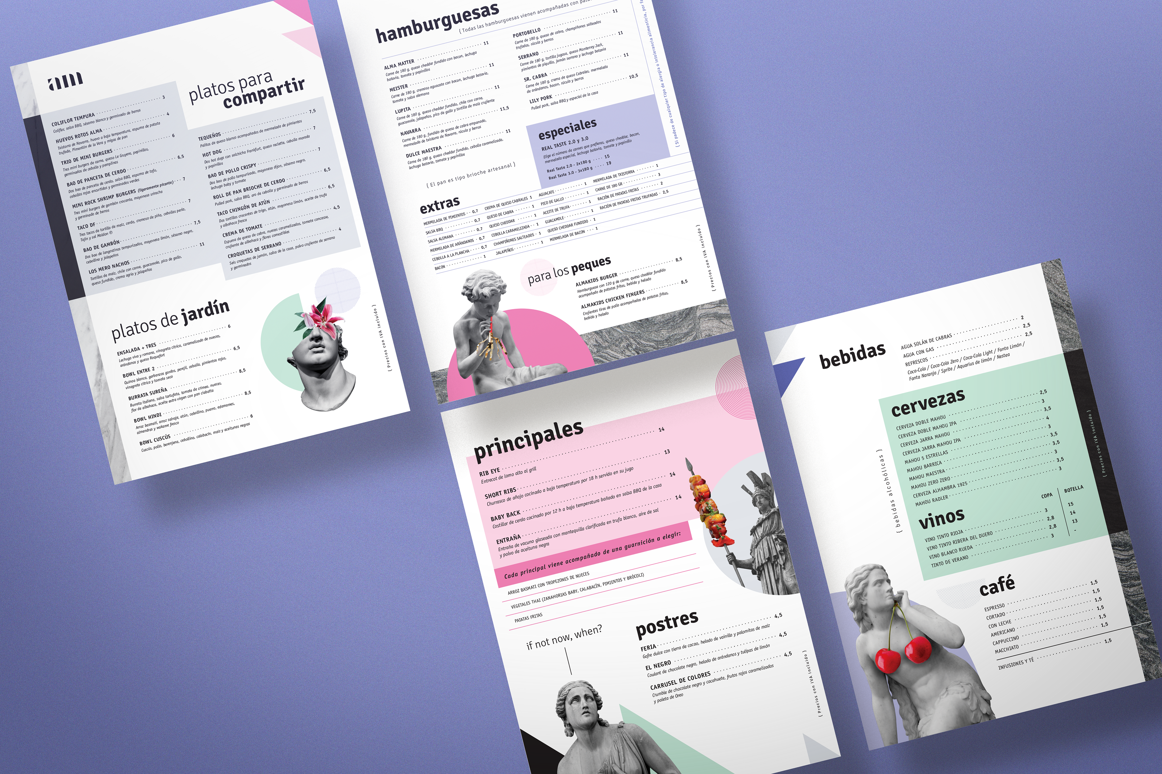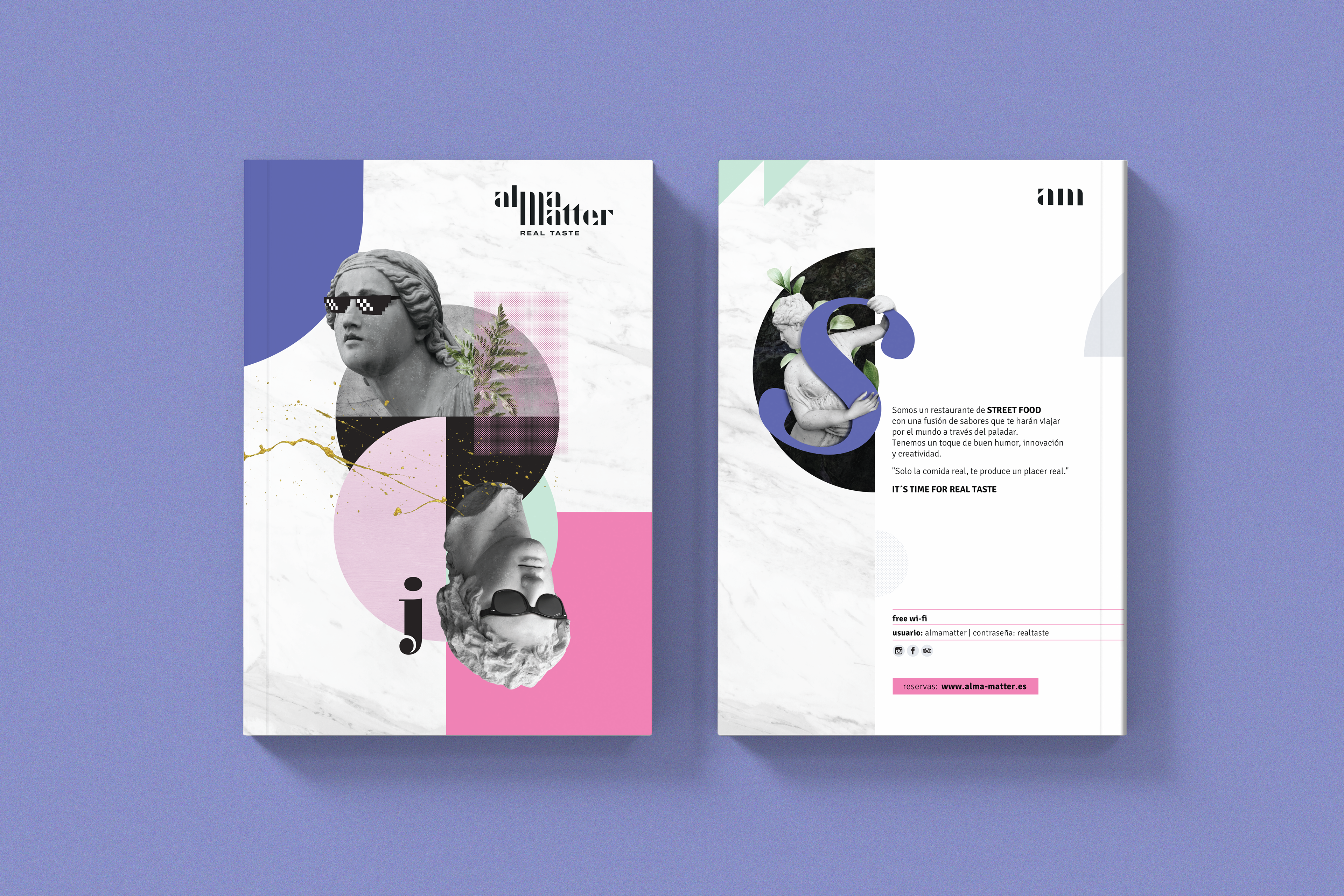 Inspired by Brutalism, the universe combines raw textures, strong typography, vivid colors, paint splatters, and recontextualized classical busts, with a dose of irreverent humor—a language that matches the restaurant’s young, fresh spirit. The result: an identity memorable enough to be etched into the Alma Matter of every visitor.