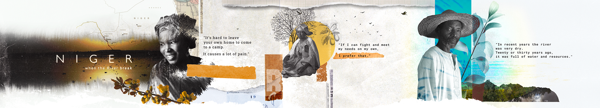 Amid the rising waters of the Niger River, the stories of Amina, Fati, and Hama show how flooding can completely reshape everyday life. To bring their experiences to life, I worked with materials shared by those affected—photographs, videos, and audio recordings—and, through collage compositions, I built three environments that simulate a brief journey from the perspective of each impacted character. The project grew out of the initiative and fieldwork of photographer Charlotte Cans (UN OCHA), who created the photographs and videos and gathered the material that shaped the narrative. Working closely together within UN OCHA, we transformed that documentation into a piece designed to amplify these voices. In doing so, the work highlights the urgent needs of communities impacted along the river.
